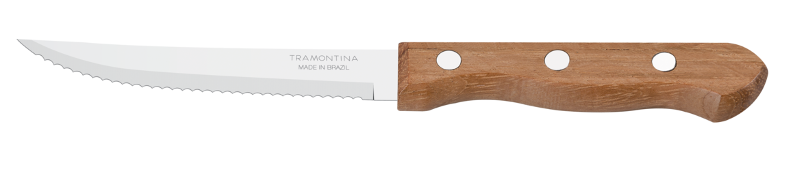 Классический нож для стейка среднего размера с крупной рукоятью. Рукоять из светлого дерева, а лезвие из нержавеющей стали AISI 420.